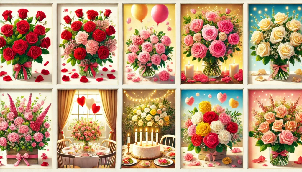 Here is an enchanting depiction of roses for various occasions, each arrangement thoughtfully tailored to express love, joy, and connection.