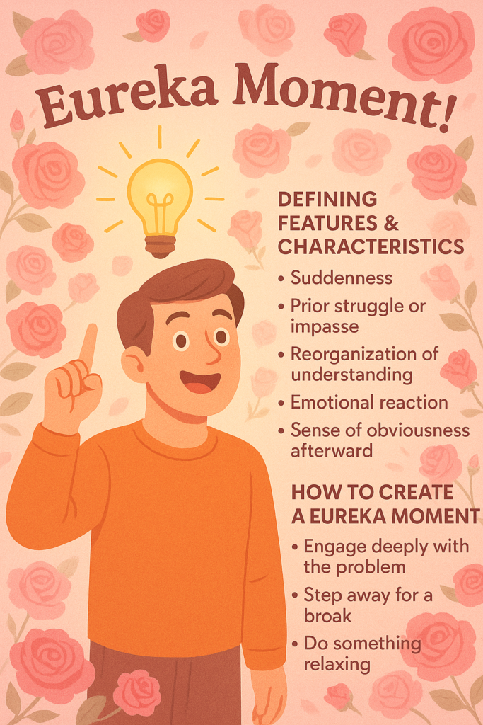 List of Eureka Moments, Eureka effect, insight, realization, “aha” moments, discovery, and flow states.