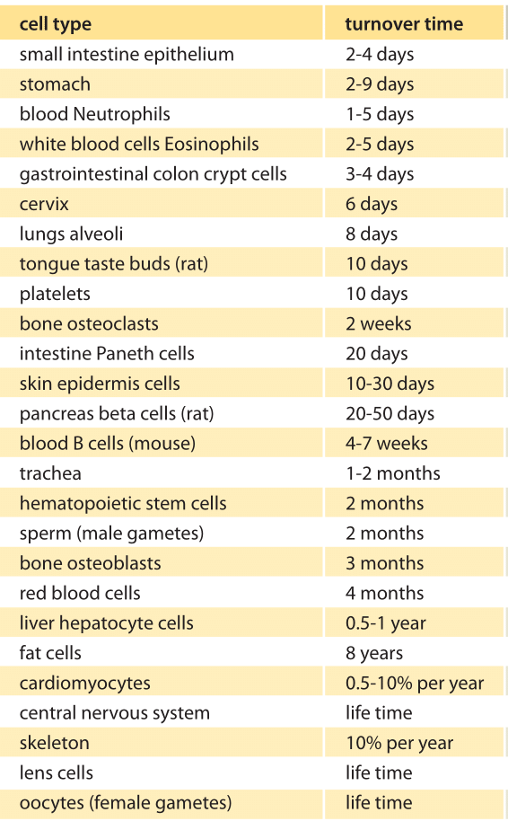 Fat Cells8 – 10 YearsCyclical (10% replaced annually)